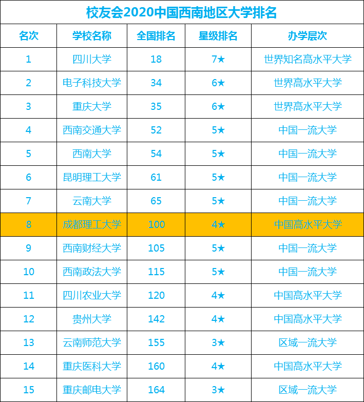 2、校友会2020中国西南地区大学排名