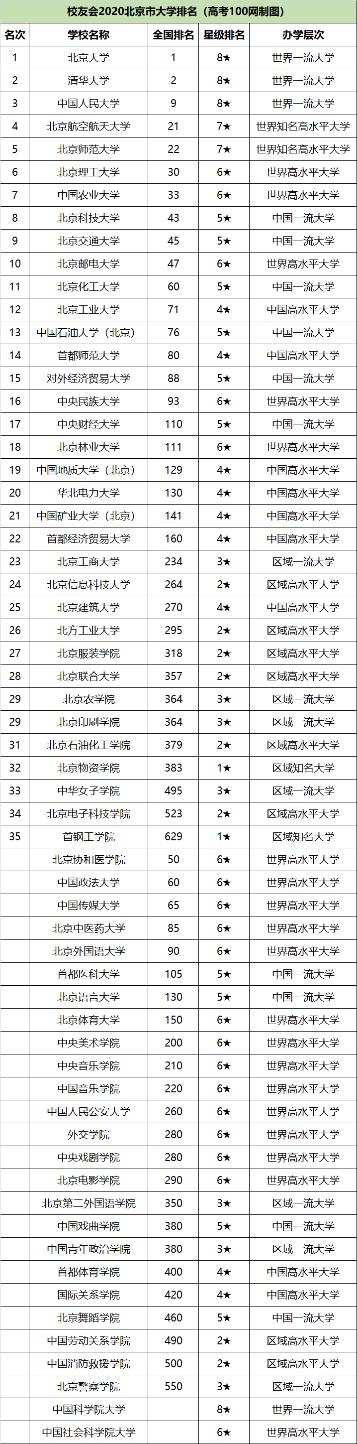 以下是北京市2020年中国大学排名具体名单,供同学们查阅!