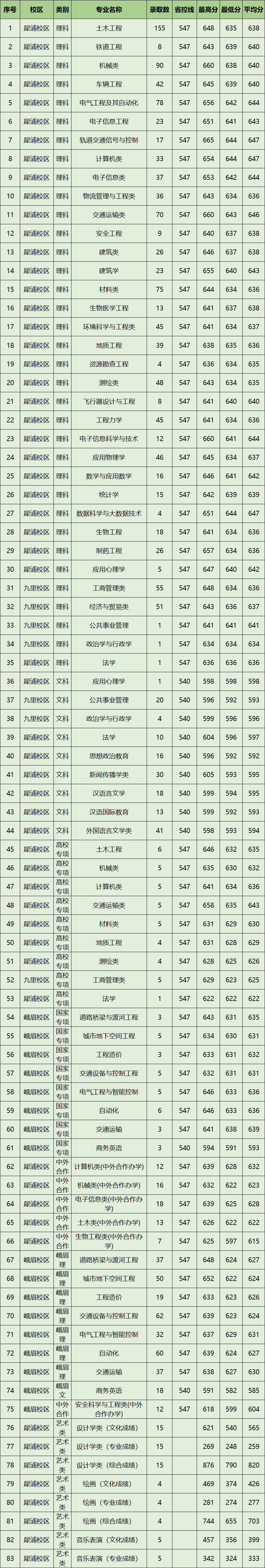 根据西南交通大学本科招生网公布的数据可知: