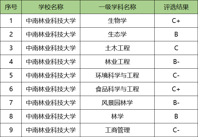 在教育部全国第四轮学科评估中,中南林业科技大学的“生态学”、“林学”学科被评为B,是学校所有上榜学科中评选结果最好的学科。