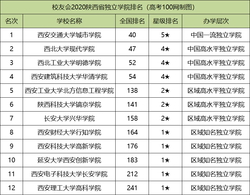 以下是陕西省2020年独立学院排名具体名单,供同学们查阅!
