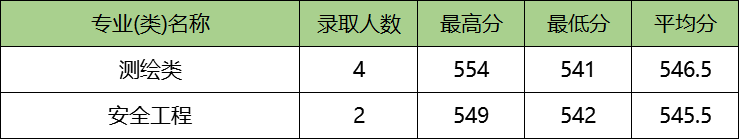 二本理科收分最高最低的专业均为测绘类专业,其录取的最高分为554分,最低分为541分。