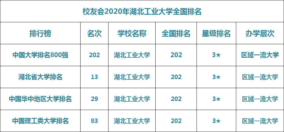 根据校友会2020中国大学最新排名可知,湖北工业大学在国内所有高校中排名第202,在湖北省的大学中排名第13,在华中地区的所有高校中排名第29。