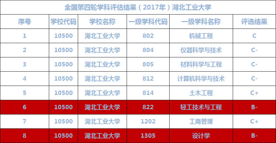 在全国第四轮学科评估中,湖北工业大学的轻工技术与工程、设计学等学科获得了B类结果。