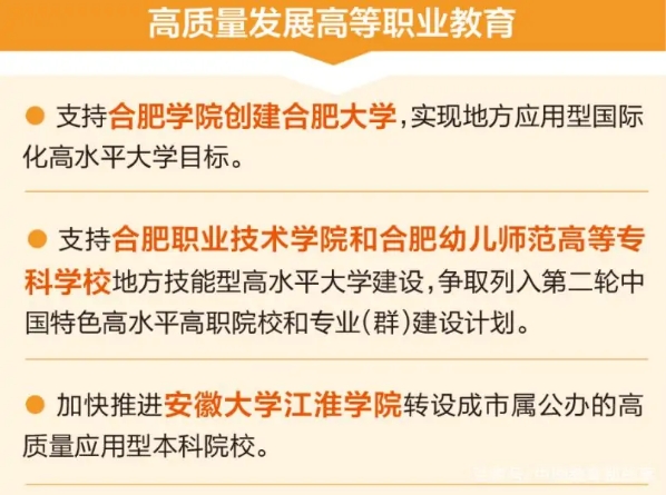 在2020年9月,合肥市政府发布的《合肥市职业教育改革实施方案(2020-2022年)》中,就已经提到,将加快推进安徽大学江淮学院转设成市属公办的高质量应用型本科院校。