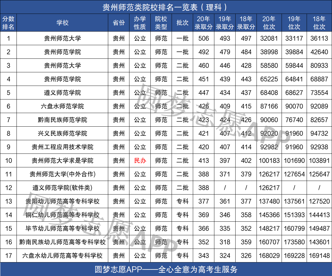 注:贵州省内还有很多综合性大学开设有师范类专业,其近三年招录数据可以在圆梦志愿APP中查阅!