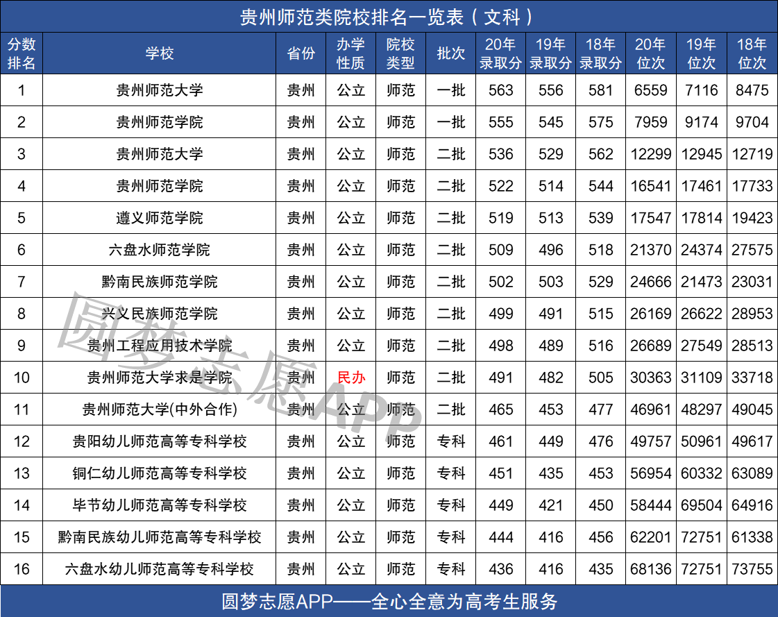 贵州省师范类的院校一直以来都是深受广大考生和家长们的追捧,因为师范在很多人看来就是稳定的代表。为此,很多人都好奇贵州省都有哪些师范类的大学。本期小编为大家整理出贵州省师范类院校的名单以及师范类院校近三年在贵州省文理科的最低录取分数线排名,供广大考生参考。