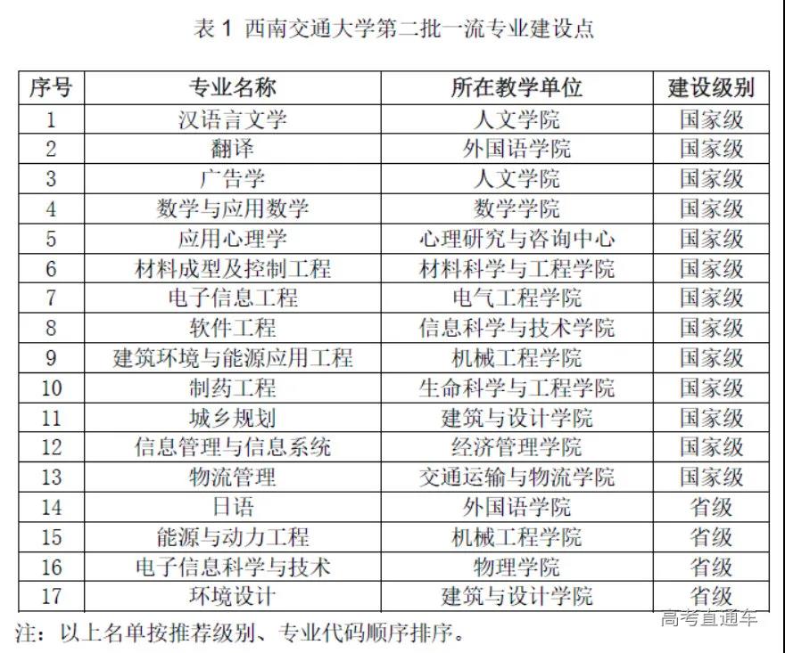 西南交通大学共13个专业获批国家级一流本科专业建设点,4个专业获批省级一流本科专业建设点(名单见下表)。