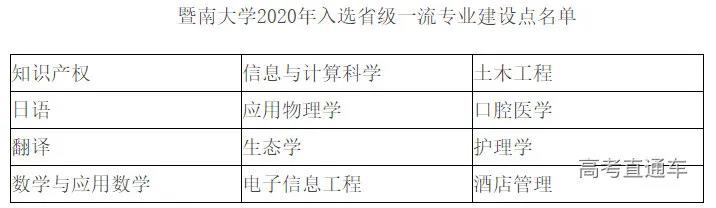 暨南大学经济统计学等13个专业入选国家级一流本科专业建设点,知识产权等12个专业入选省级一流本科专业建设点。