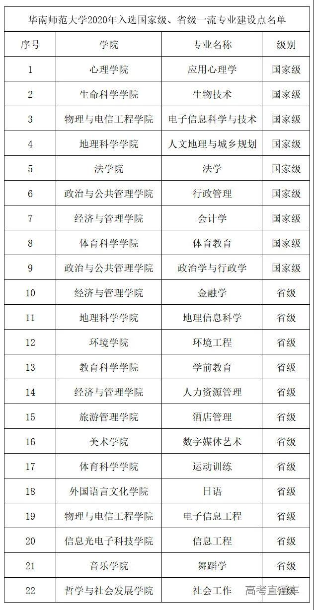 华南师范大学应用心理学等9个专业入选国家级一流本科专业建设点,金融学等13个专业入选省级一流本科专业建设点。