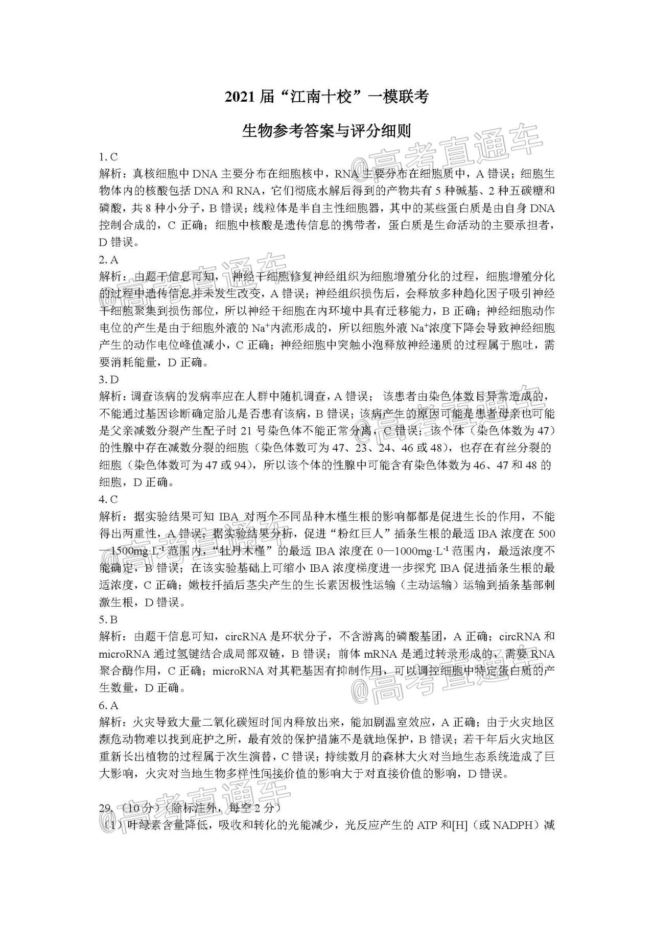 2021江南十校理综答案公布!本期分享2021江南十校一模联考答案,分别是2021江南十校一模化学答案、2021江南十校一模生物试卷分析、2021江南十校一模联考物理答案解析。