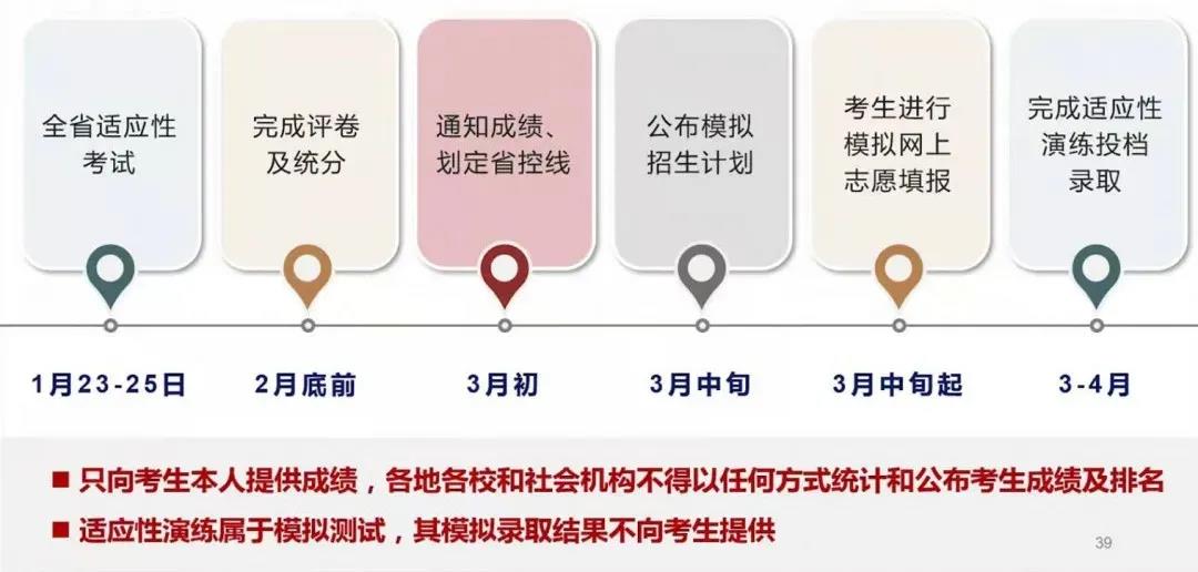 在此前新高考适应性考试举行时,湖南有相关媒体提到,此次适应性测试后,各省将组织统一评卷,考生根据适应性考试成绩,模拟填报志愿。教育部门也将通过考试,为后阶段模拟划定分数线、模拟填报志愿、模拟投档录取提供重要依据。