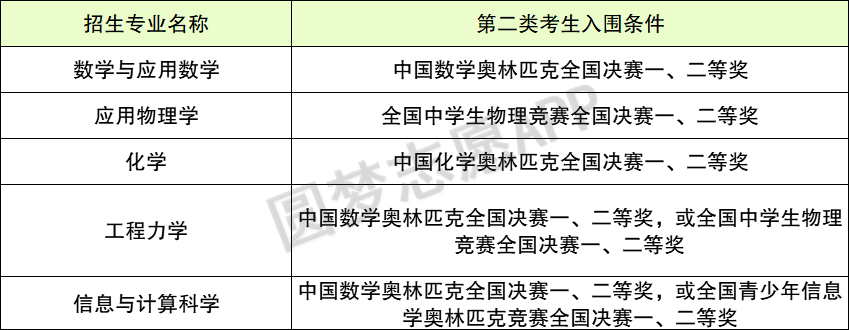 对于第二类考生,达到学校以下条件(详见下表)和报名条件规定的高考成绩要求,即可入围。