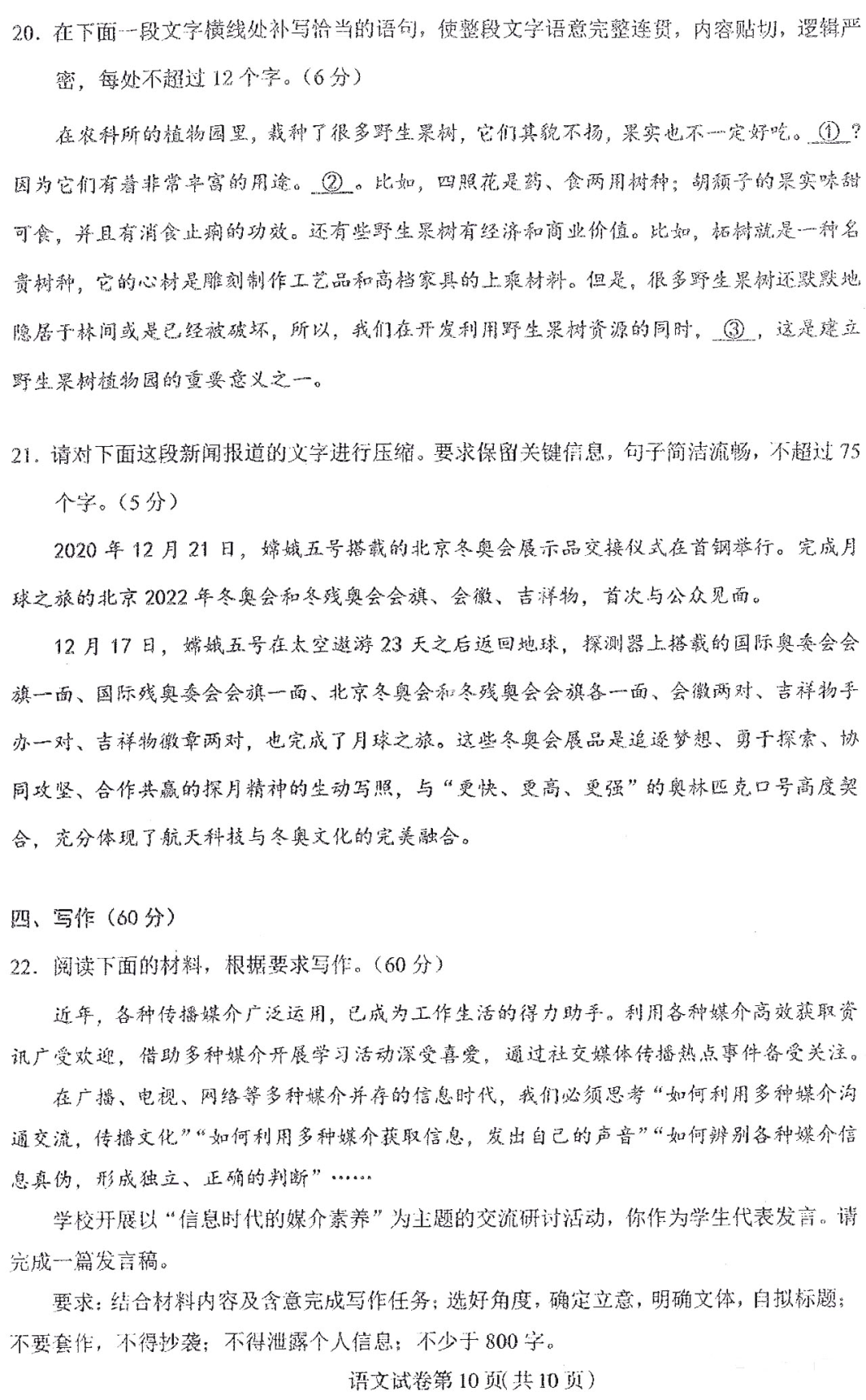 2021东北三省四市一模语文答案及2021东北三省四市一模答案真题试卷如下: