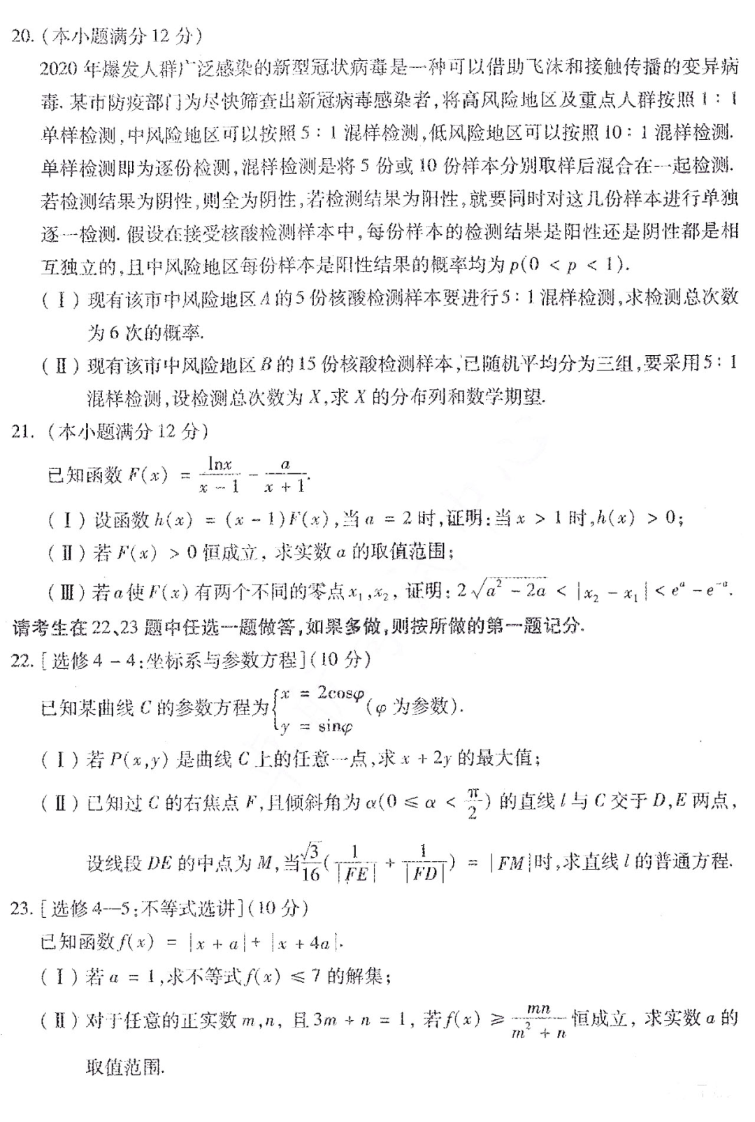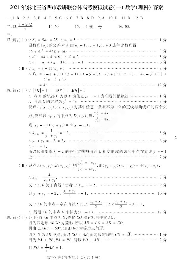 2021东北三省四市一模数学答案及真题试卷解析以及2021东北三省四市一模理科数学答案