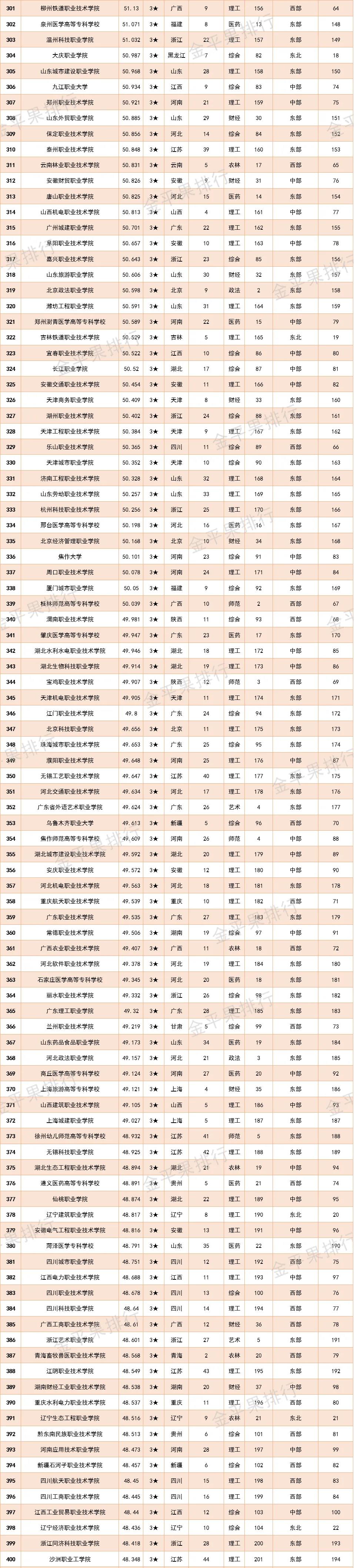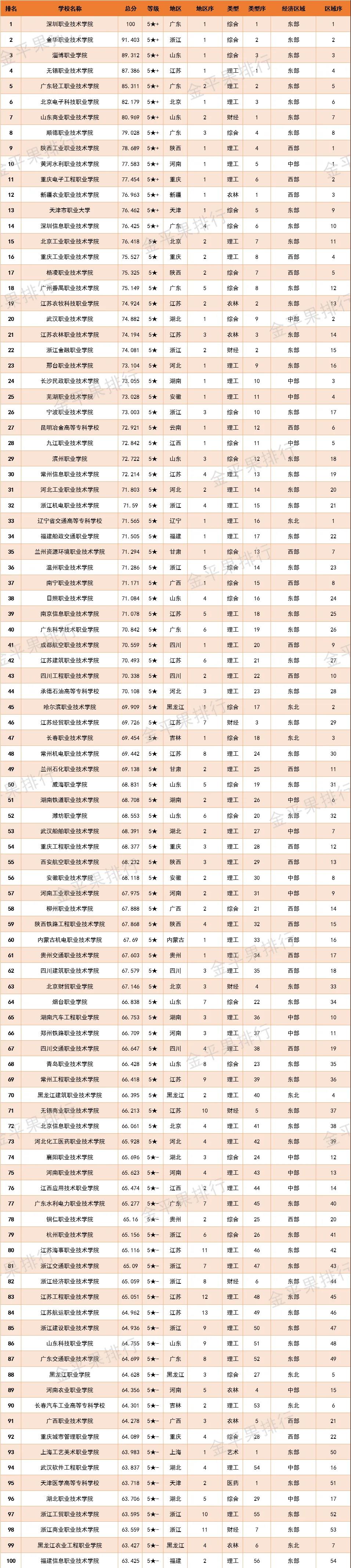——江苏、广东、山东、河南、湖南地区实力居前,深圳职业、金华职业、淄博职业、无锡职业、广东轻工排名高职高专前五位,南京工业、海南科技、广西城市列职业本科院校前三甲。