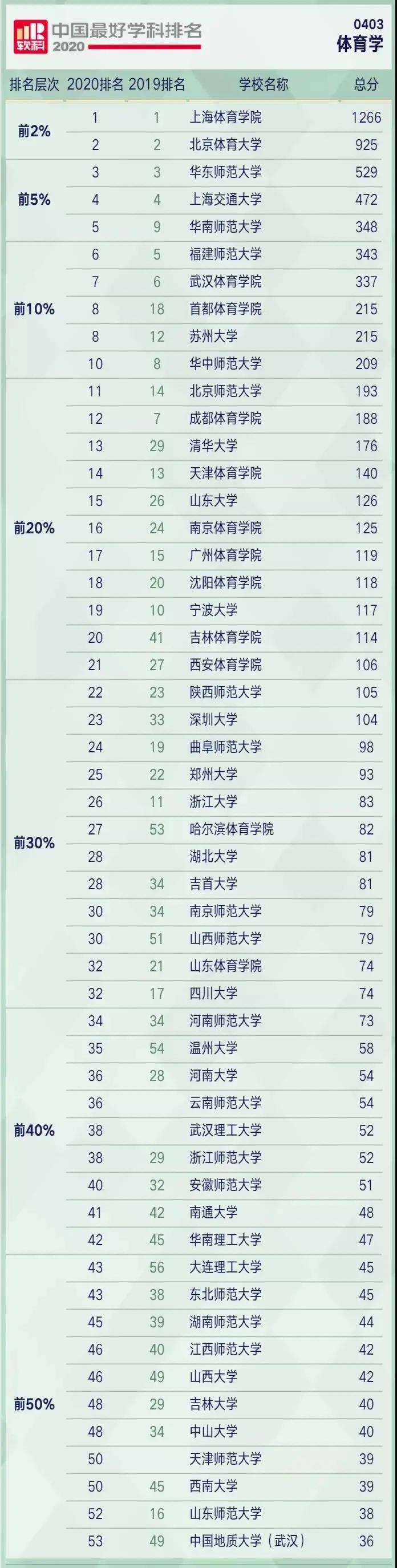 体育生选择大学专业最多的是体育学,日前,高等教育评价专业机构软科公布了“2020软科中国最好学科排名”。今年的排名榜单包括96个一级学科,共有485所高校的4946个学科点上榜。其中体育学学科排名共有53所大学上榜,上海体育学院、北京体育大学位列前2%,武汉体育学员位列体育学院第三。
