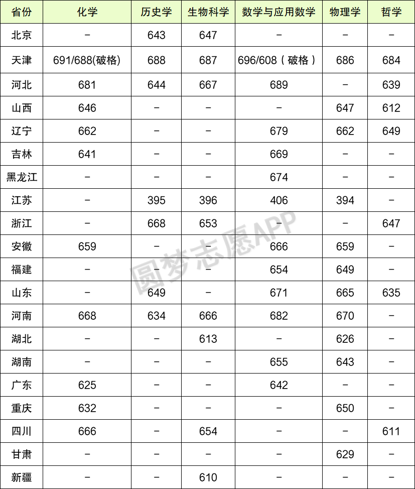 从下表可知,南开大学不同专业在不同省份的入围分数线差异较大: