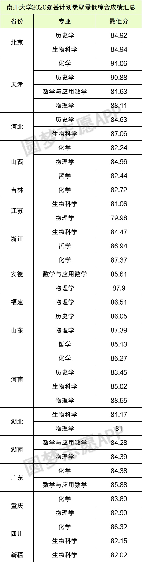 以下为2020年南开大学各专业在不同省份的录取分最低综合成绩,供大家参考: