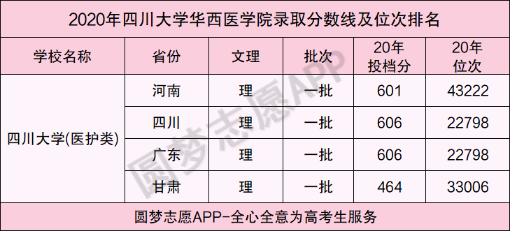 二、四川大学华西医学院录取分数线2020年最新排名