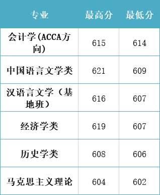 录取分数线最高的是:会计学(双语实验班),602分;其次为金融学(双语实验班),601分;第三位为会计学(注册会计师专门化方向),600分。均比肩川大文科调档线。